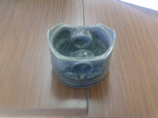 この灰皿、元々は日産プリメーラの純正ピストンでエンジンOHの時にオーバーサイズ&ストロークUPで2.2Lにした時に出た廃品のリサイクルです。無理をしたので溶けかかってますが灰皿としてはGOODです♪