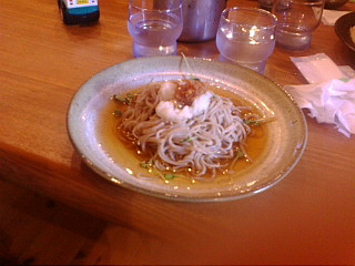 中身は大根おろしとなめたけ?とかいわれです。麺極細固め、大根辛い、汁薄い・・・・麺も少ない!!これで1000円