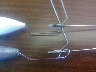 さて今回紹介する物は、紹介って程ではないんですが引き釣りメインのHP「投げ北近畿」の佐織氏が紹介した「かっ飛びセンシティブ天秤」^^;の全遊動タイプを無許可で勝手に改造製作(佐織さんすみません<(_ _)>)してみたのでその紹介です。