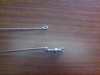 なので、直結が理想かもしれませんが道糸の「撚れ」が気になる場合は写真下の小さいスイベルを入れて道糸とつなぐか、引き釣りに使われているスマートなスイベル(FUJIパワースピードスイベル)(pdfファイルです)で接続します。