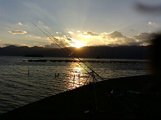 狙うはどすこい、場所は東と勇んで家を6時半出漁。8時に釣具屋に到着し、ユムシとチロリと○○(以前Lさんが使ってるのを見て使ってみたくなった)を購入、一路東へ8号線に入ったとこでメールを打っていたMさんよりTEL聞くと本日は北へ出漁らしく・・・・「東側は人多いよー西側某所にYさんいるから」っと教えてもらい話しを終え、目的地とうちゃ~~く。が!!