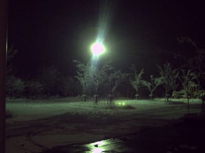 さすがにこの寒さでは人っ子一人いません。まさに静寂・・・・雪が水面に当る音が聞こえます。その静寂を打ち破る〇カ2人!狙いの地合は朝7時!しかし、我が兄弟に課せられた任務は過酷な上許される時間も少ないのです!なので、否応無しに夜間も問答無用で魚に攻撃をするのです。