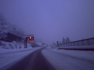 夜8時過ぎに家を出発し自動車道をひた走りますが、白川郷付近は当然