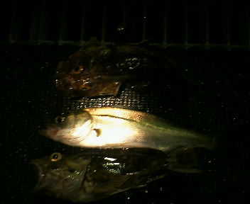 カサゴ2匹、セイゴ?1匹の釣果です。