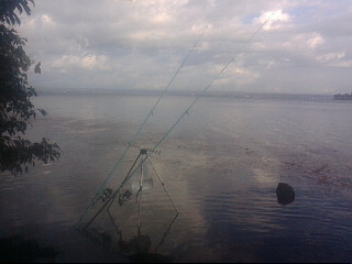 AM1時に2本竿出し完了です。日が昇ってから3本勝負です。