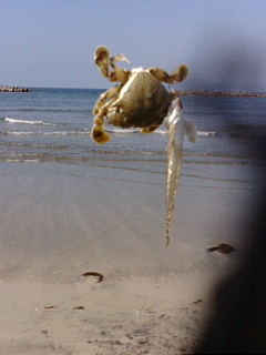 ガッチョとカニが格闘しながらあがってきました(@_@;)