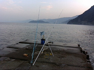 10時:江良で3匹キスを水揚げし五幡にて釣り開始。なぜかエギングしていた近所の親父さんと仲良くなり11時前まで談笑(実はこの親父さん9月の始めの釣行でも同席している)