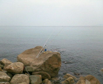 メンバーは「兄ちゃん」で土曜8時半家(岐阜)を出発、シ○さんお勧めの303号線でひたすら爆走し10時半いつもの釣具屋に到着、今回は鯛系、キス狙いということでユムシ&チロリの2大勢力で大物撃沈を狙います。