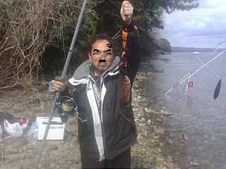 臨検も済みTELで話をしていると、僕のスッピンに当たりが!しかも糸ふけ♪嫌がおうにも期待が・・・・しかし2回の当たりでしゅうりょ~~なんて思っていると隣のサフリダにも当たりが(@_@;)地合かーこのやろ~~~なんて思いながらTELを切り、スッピンからあげると非常に重い!!大物??と思わせるくらいの重量感・・・・しかし、水揚げすると25cmくらいのマコカレイが付いてました(T_T)よくよく考えると錘33号が乗っていました^^;