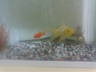 金魚・・・・・・しかも4匹・・・・食いぷちが増えました(T_T)
