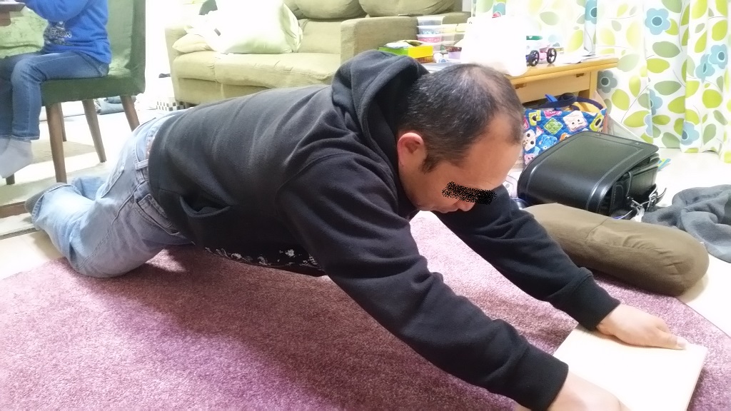 ちなみに上の子が同じようにやってみましたが、腹回りの筋力が弱いのか前へズルズルベタッと潰れてました(笑)