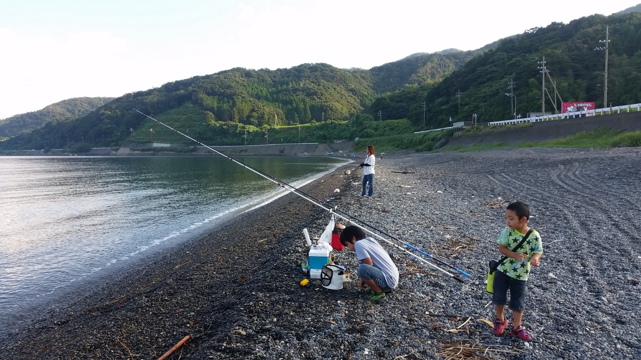 陽が昇ってからは家族を連れて定番の佐田浜。