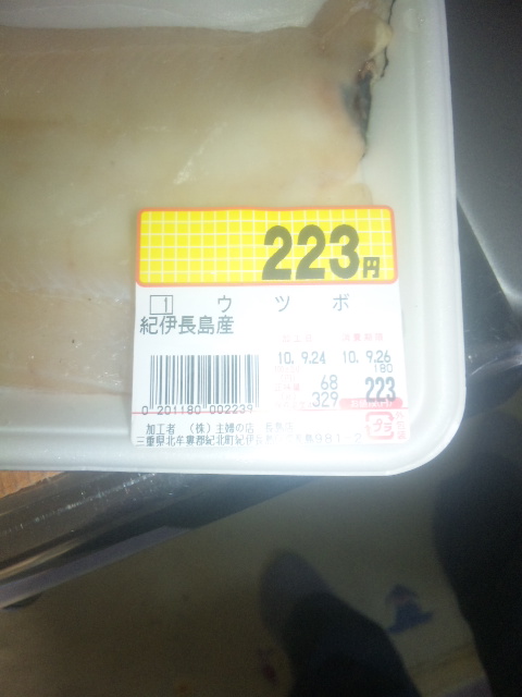ちなみにこ奴は紀伊長島産でお値段バリュ~プライスの223円です。