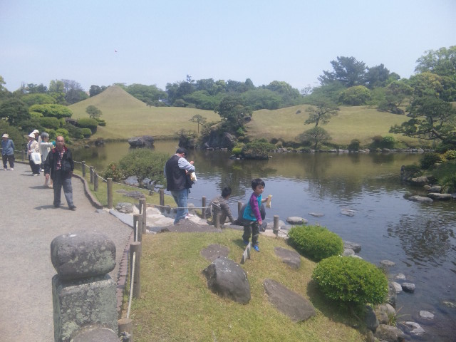 綺麗な庭園の池には鯉やウグイなどの川魚がたくさんいましたよ!