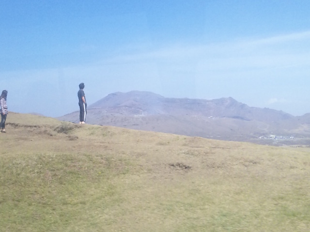 これが下の女の子を激写したわけではなく、地元の人気スポット(?)の大観峯ってとこで、阿蘇山を一番綺麗に見れる場所と運転手さんは言ってました。