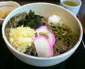 これが「冷し蕎麦」で、中身はかまぼこ、大根おろし、山菜、わかめ、油玉、薬味にわさびが装填されてます。なかなか破壊力ありそうな内容です!