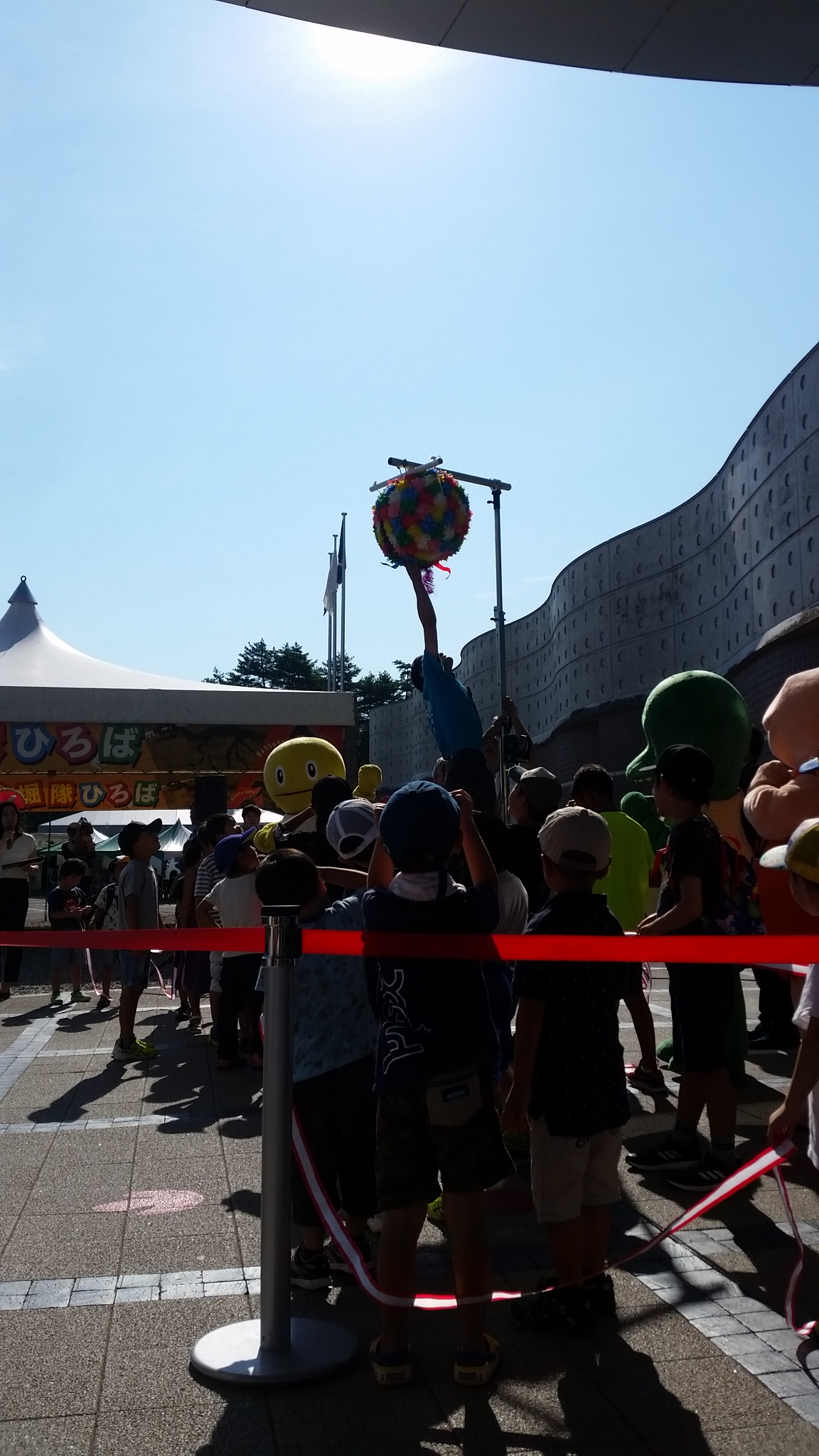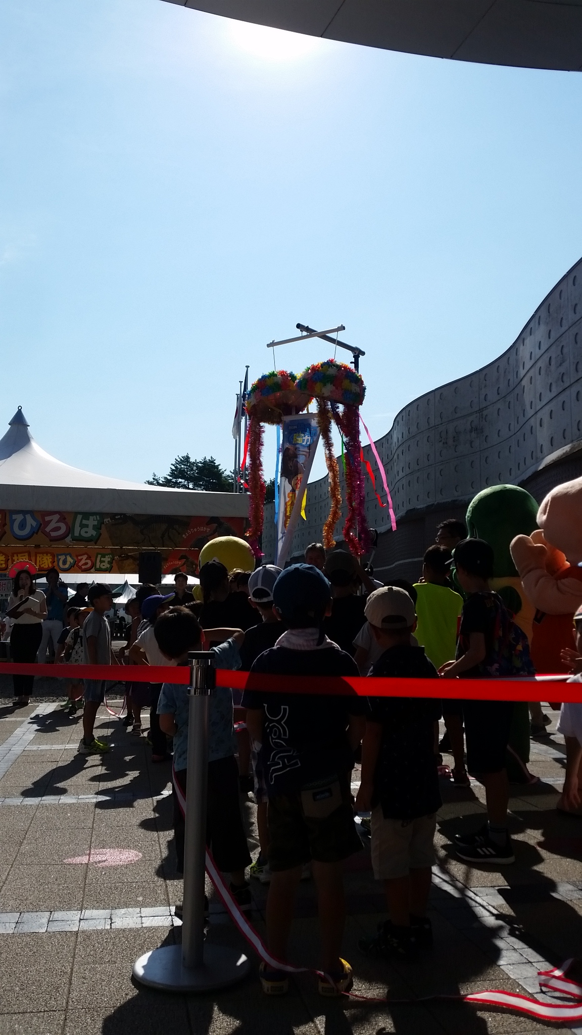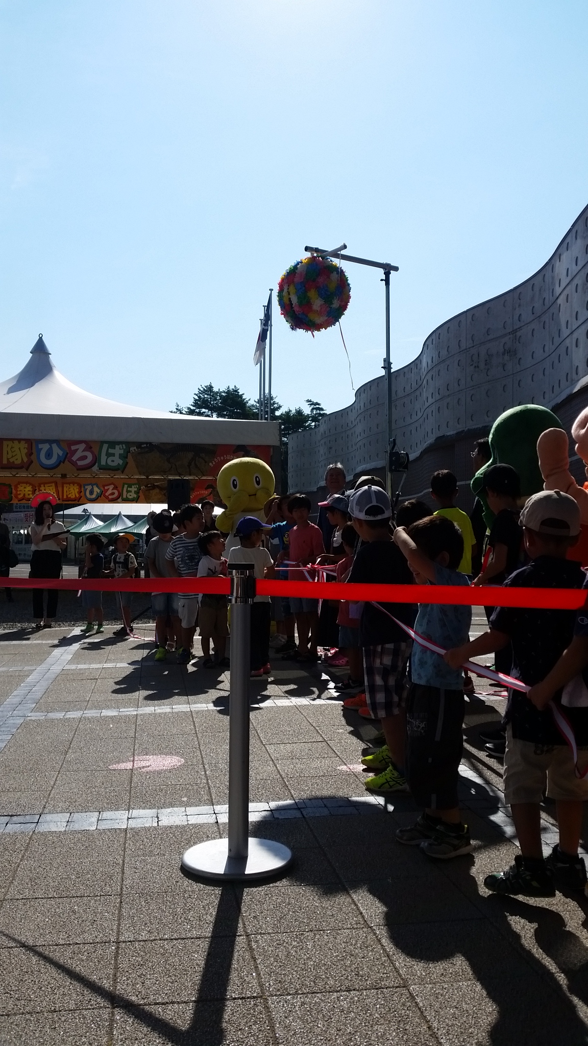 くす玉を割る為に来館してる子供たちが条件付きで呼ばれまして、いよいよくす玉を割りますよ~