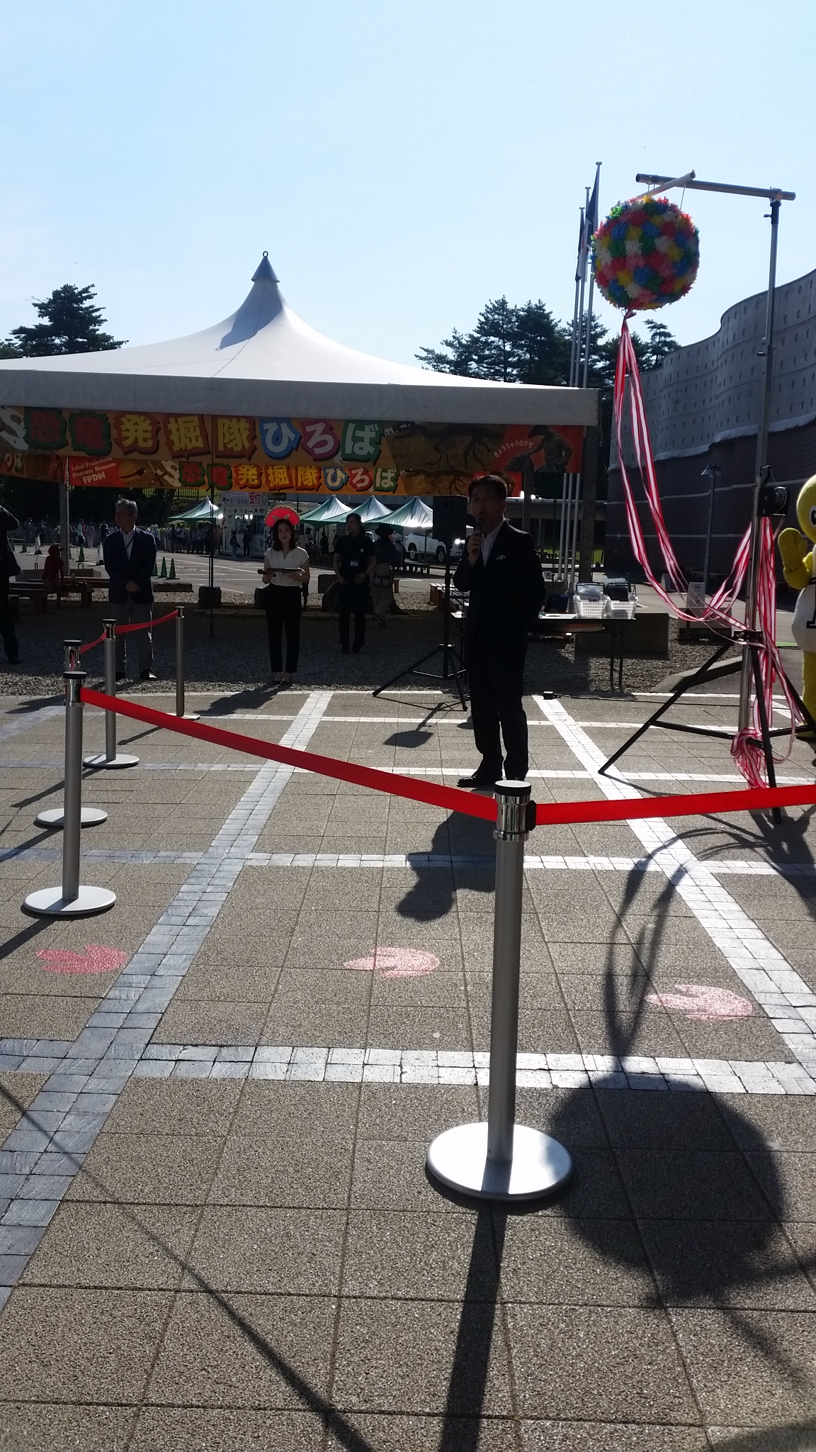 恐竜のマスコットも駆けつけてまして