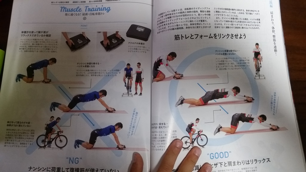 最近はスクワットに片足ヒップリフト、プランク、サイドプランクをやってましたが、個々の筋トレのみだったのでこれはダメだと思い、雑誌で見たこのトレーニングをやってみようと。