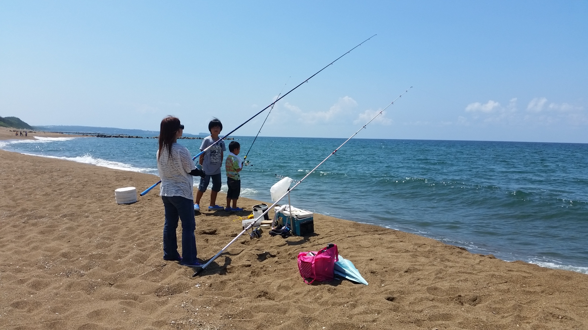 昼ごろ波松海岸へ到着し海岸線を走りますと人はいるけどあまり釣れてない様子です。