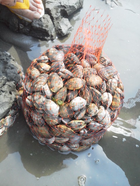 だんだん潮が引き沖目に出て行くとあさりが取れだし