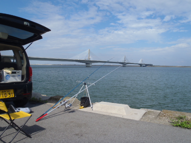 今日は嫁はんが仕事という事で、子供を連れて木曽川の河口もう出口まで何十m付近で釣りをしてきましたよ