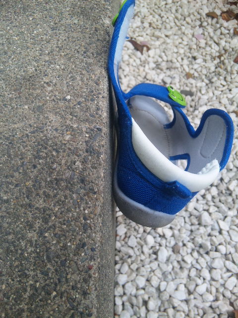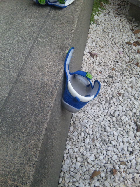 でも、コンクリートの側面に靴がひっついているのです(@_@;)