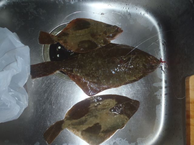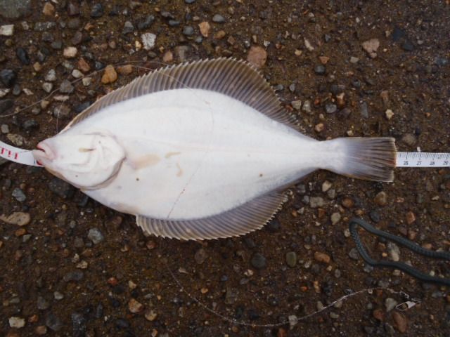 まずは朝の地合いで25cm程度のカレイがつれました。