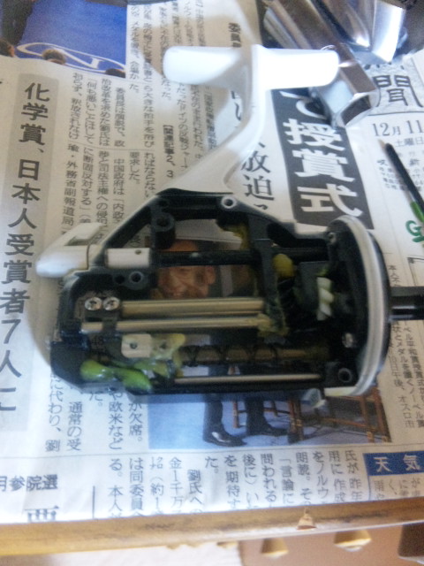 スプール軸やらなにやらをグリスを塗ったりしながら組んでいきます。