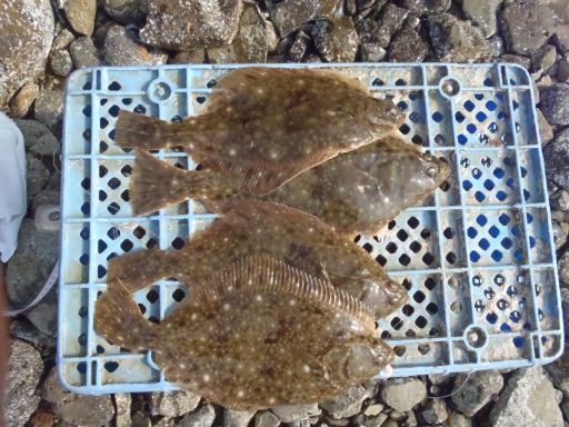 食べごろサイズの石カレイが4枚釣れましたよ~~(^_^)v