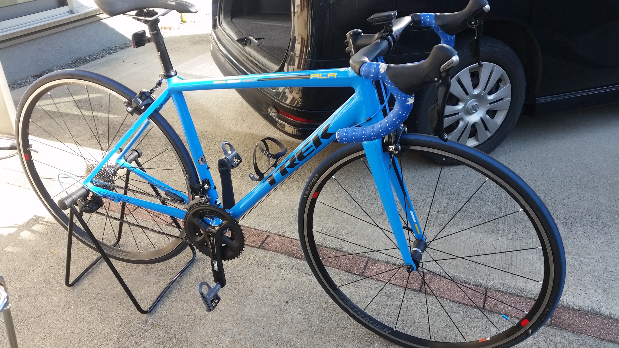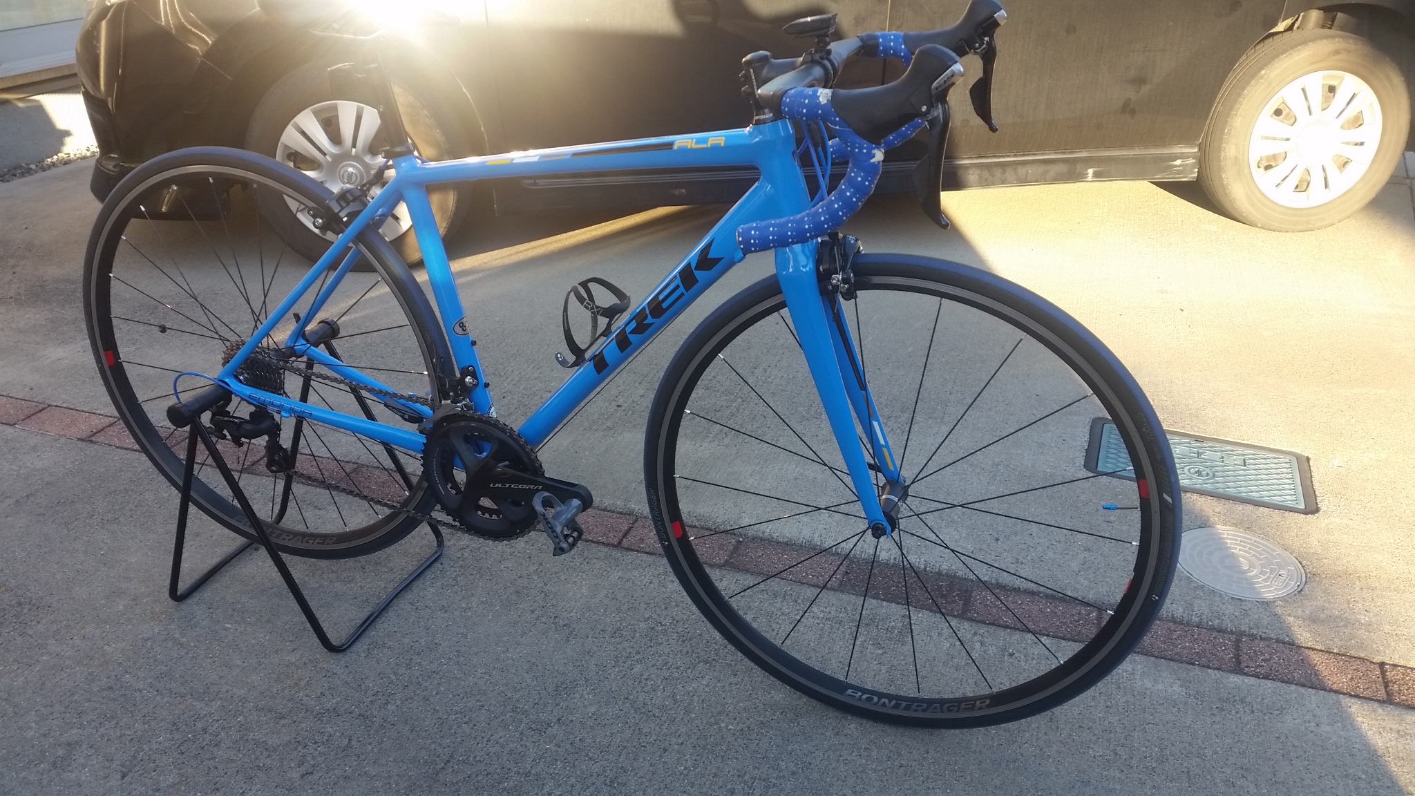 ネットでちょいちょいっと調べたら、このロードバイクはサイズ52で8.4㎏でうちのもサイズ52なんで、ペダルとボトルホルダーがついてまぁその辺りの重量かと・・・