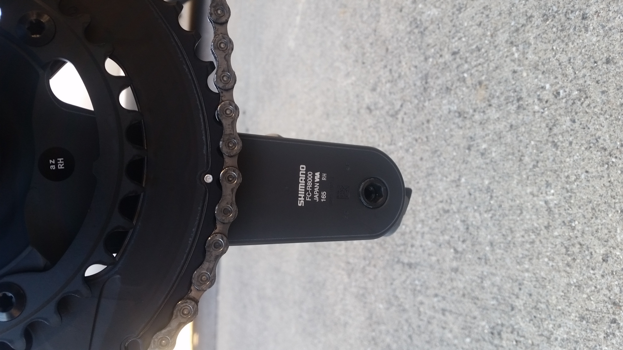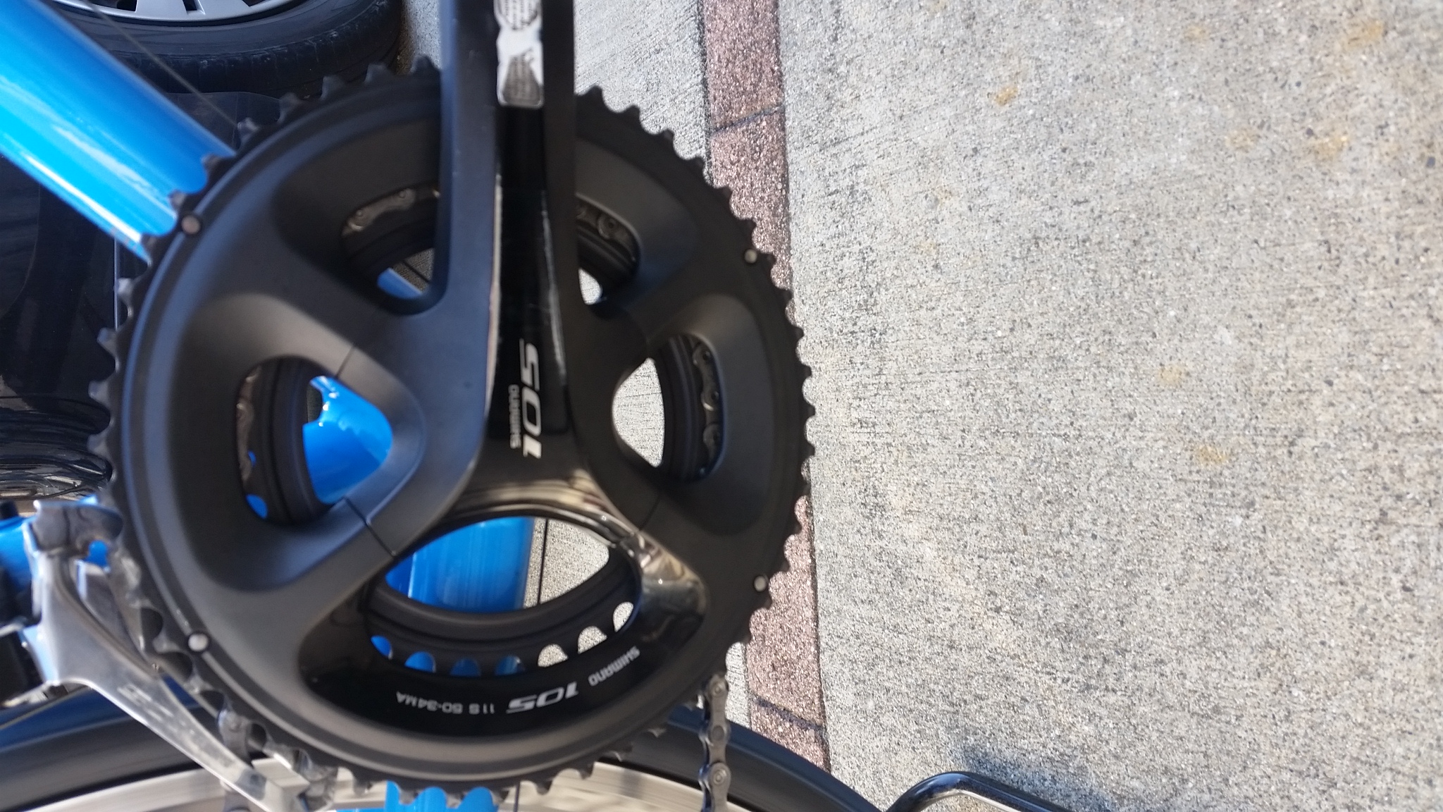 これが最初からついてたクランクでシマノの105です(写真が横を向いてごめんなさい)