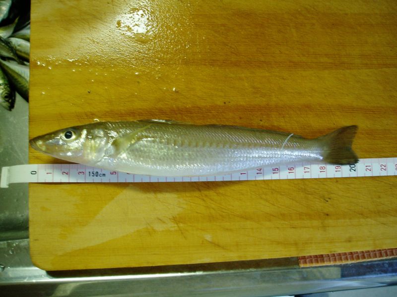 餌はチロリでさびいて見ますがなかなか当たりが出ません。そのうち初GETは10cmくらいのキス^^;これに気をよくしてさらにサイズUPを試みますが当たりがあるけどなかなか乗りません。無銭飲食が上手いキスのようです(-_-;)それならと錘をL天秤にしてちょっとダイレクトさを無くしてみますがあんまり変わらんし・・・・引出が少ない僕には針を小針にするしかありませんが、